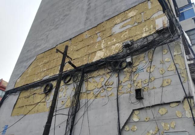 圖九、沈河區大南街道一處既有建筑改造外墻,這種質量的外墻比比皆是,非常有安全隱患。